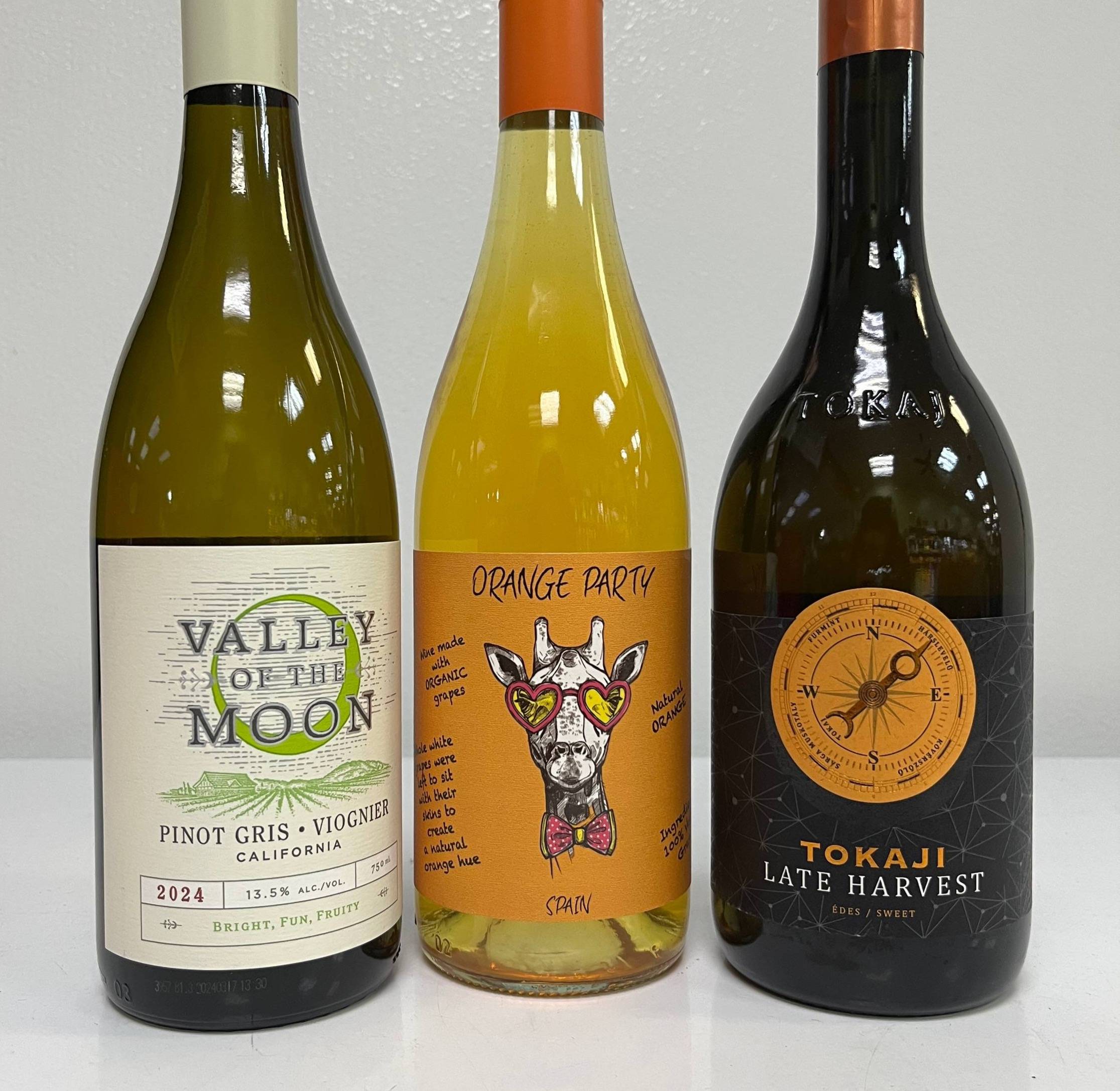 Now let’s talk bottles. Valley of the Moon Pinot Gris / Viognier brings bright pear, peach, and pineapple, plus the fun fact that each grape is fermented separately… like dramatic roommates who need “their own space.” It’s perfect with turkey, potatoes, and anything smothered in butter (so… everything!). Orange Party from Spain—made from the nearly-extinct Verdil grape—offers apricot, marmalade, and just enough tannin to glare down roasted Brussels sprouts like a monster truck driver at a Castro St crosswalk. And when dessert hits (or you hit dessert early), Tokaji Late Harvest delivers honeyed, noble-rot magic that pairs beautifully with pecan pie, blue cheese, and those traditional family desserts that are literally just quivering mounds of sugar.