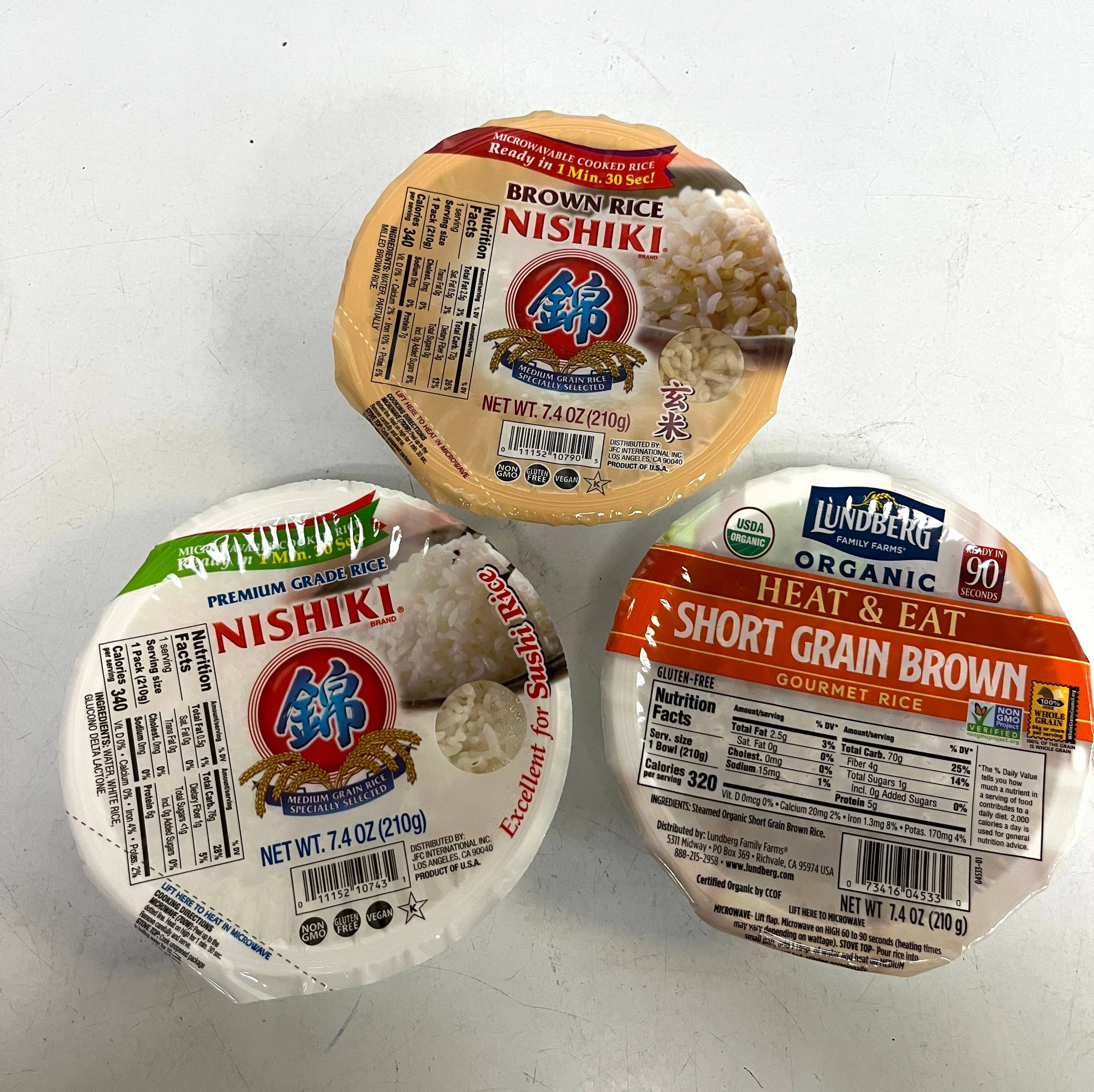 - Nishiki White & Brown Rice (microwavable) — a staple brand in Japanese households. Consistent, reliable, like that one friend who still answers your texts.